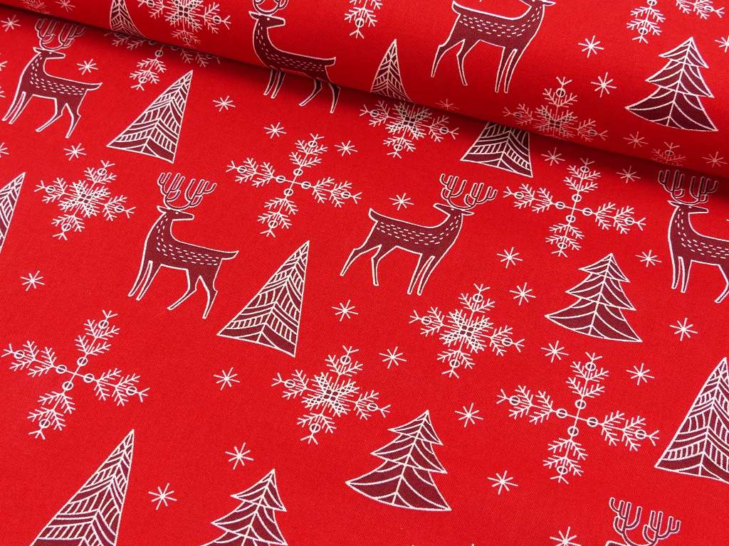 Baumwolle Tannenbaum/Rentier Rot